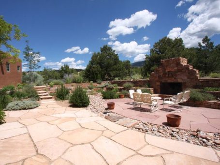 Built in the pueblo style intrinsic to Santa Fe, this 3,500 sq. ft., custom vacation home has 4 bedrooms, 3 bathrooms, and includes an attached Guest house. A great room with a combined living, kitchen and dining area opens onto a spacious patio with an outdoor fireplace. The bold design of this house derives it's charm from simple, functional materials like clay and flagstone with colors and motifs that echo traditional forms. The siting of this home was chosen to take utmost advantage of the breathtaking landscape.