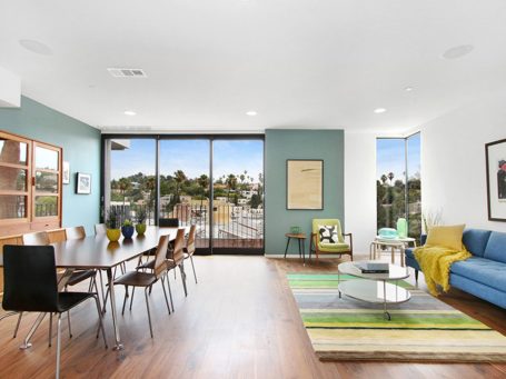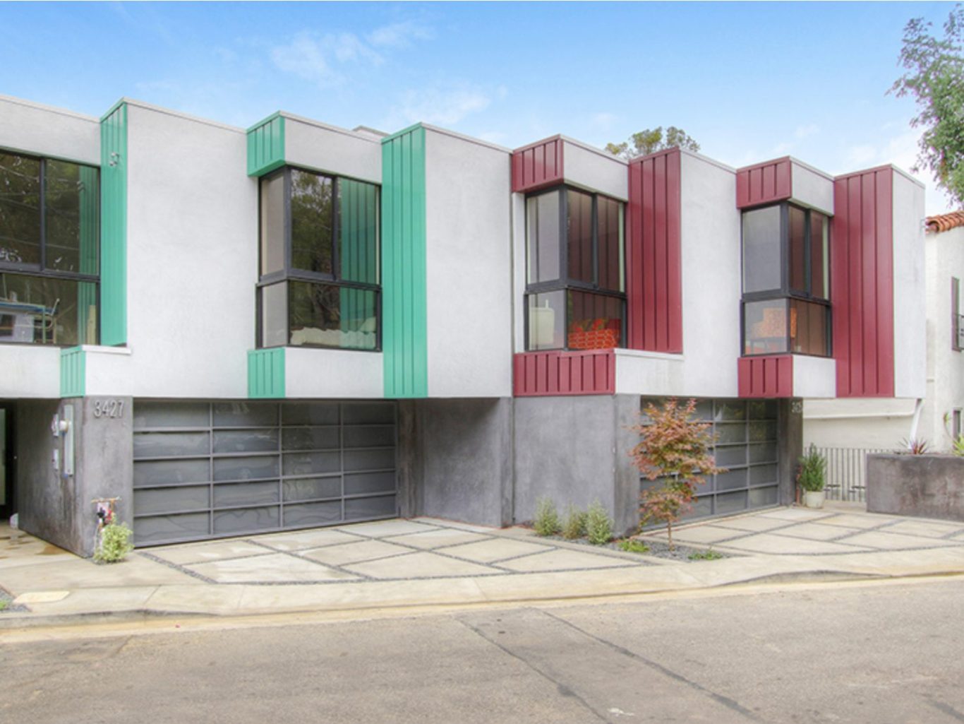 Small lot subdivision, consisting of two homes @3,000 sq. ft. each, on a hillside lot above Sunset Junction. Each home has 3 bedrooms, 2.5 baths, walk-out patios, 2 car garage with direct entry, and a back yard with expansive deck. Striking exterior design with metal siding and corner pocket window system, pivoting metal and glass entry door, custom staircase with walnut treads. These homes provide 180-degree views of the Hollywood hills and the city of Los Angeles.