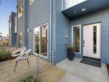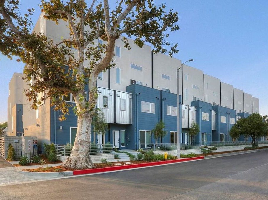 High density small lot subdivision in the heart of the North Hollywood Arts District. 19 units @3,000 sq. ft., each with 4 stories, an attached 2-car garage, balcony, and private rooftop deck. Windows are designed to allow for maximum light while providing sufficient privacy. Ample patios create additional outdoor space and help the project function as individual, single-family homes.