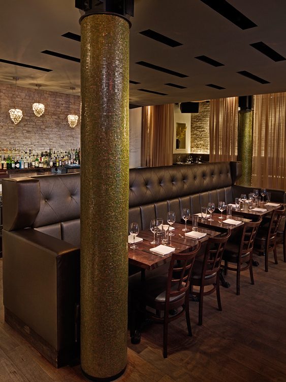 Upscale Restaurant/Bar in lower east Manhattan designed to appeal to a younger clientele. A formal exterior with marble walls and traditional details in the ubiquitous bistro style. The interior was designed around original brick walls and combined with modern fixtures and finishes for an eclectic atmosphere. A nightclub on the lower level makes use of the additional space for late night entertainment.